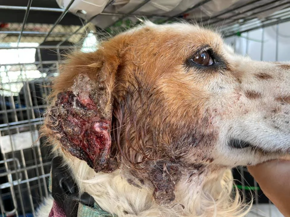 UPDATE: Bruce is feeling better! We think his ear became so infected with the beginnings of leishmania that it then turned into a dreadful infection. It’s such a shame as could have been prevented. Bruce is an extremely obedient sweet boy that must have been a pet at some time. He walks lovely on a lead and enjoys to be with people. He also gives paw sometimes... and really deserves a home!